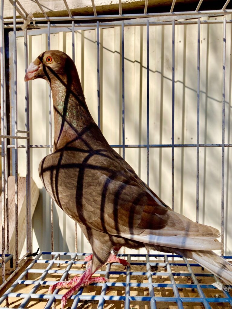 Domináns vörös (BA) alapszínű, szalagos rajzú(+C), intenzív színintenzitású(+d) galambok.
